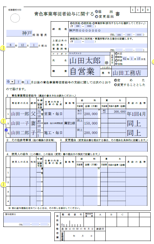 | ③ | 「青色事業専従者給与に関する届出書」を、所轄税務署長に提出(※) |