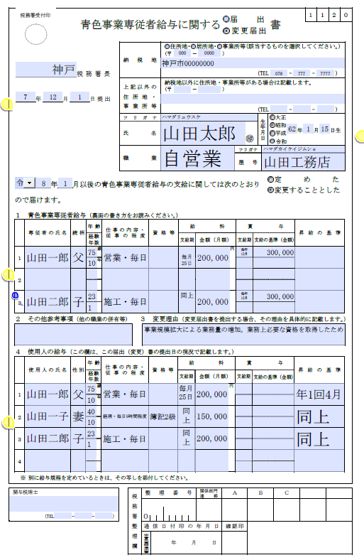 | 「届出金額」を超えて支払う場合 | 「青色事業専従者給与に関する変更届出書」の提出が必要 |