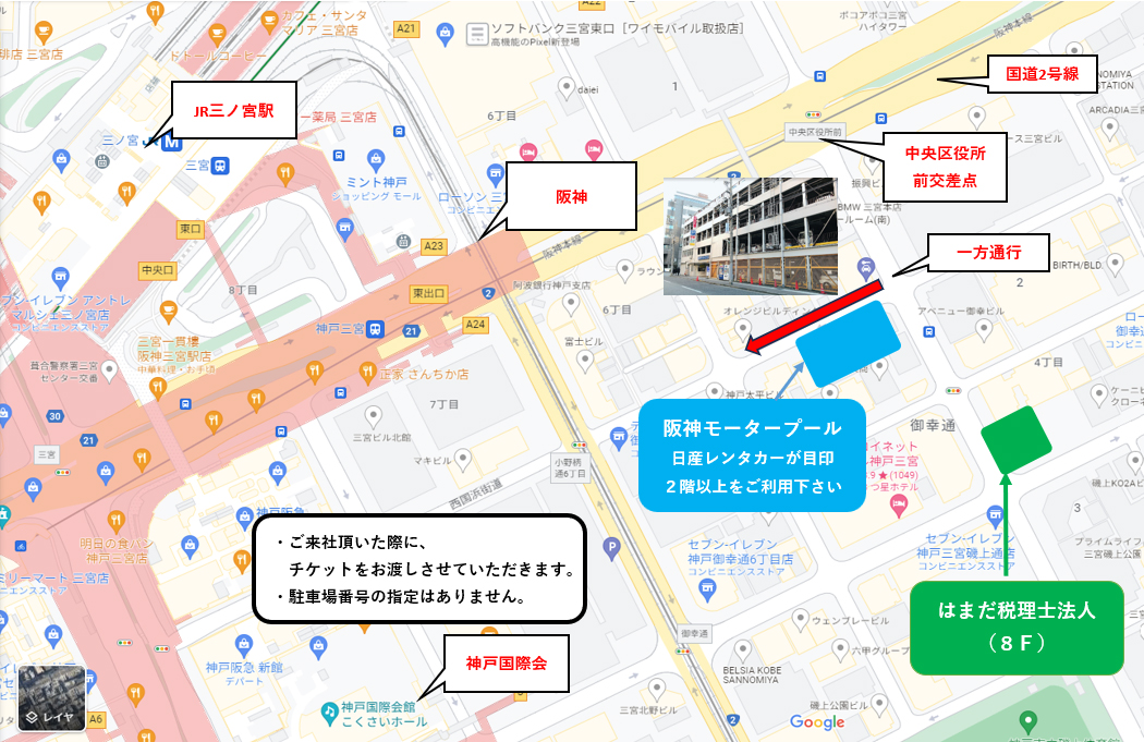 JR神戸線「三ノ宮」駅、阪急神戸線「神戸三宮」駅より 徒歩8分