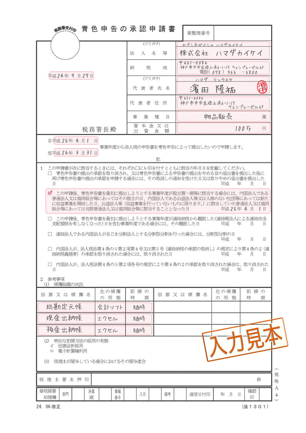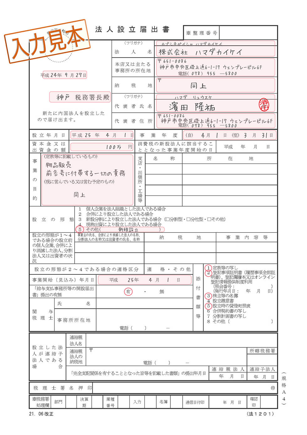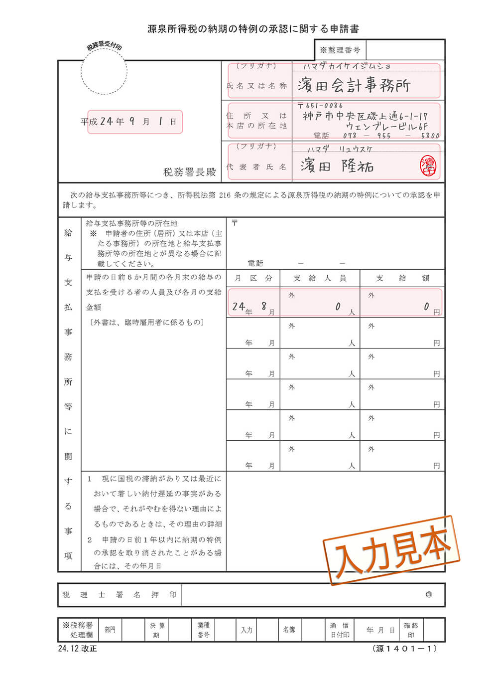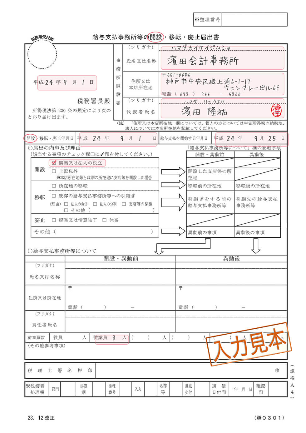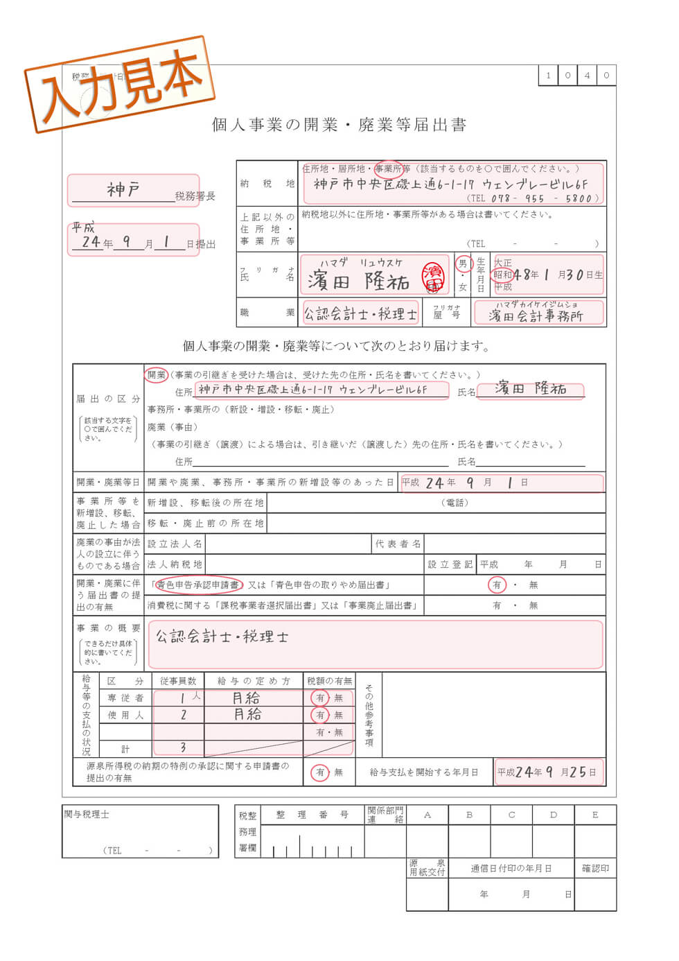 各種届出の記入例はこちら。